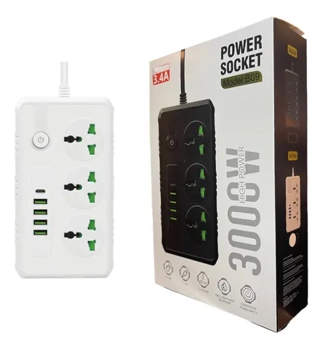 Zapatilla Cargador USB 3 tomas + 4 USB + Tipo C 3000w (B09)
